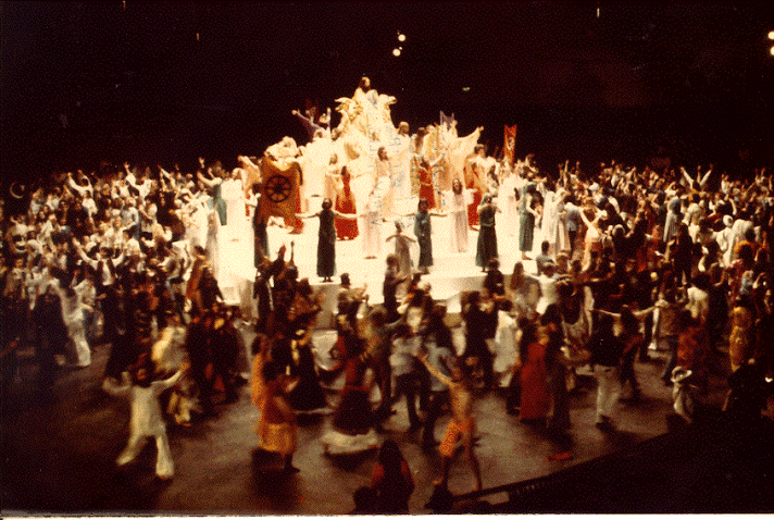 El dispositivo teatral o espectacular por su parte, es un espacio de reunión que tiene sus orígenes mas primitivos en la figura de la ronda y el canto en torno a lo misterioso, lo destellante y lo incandescente.
