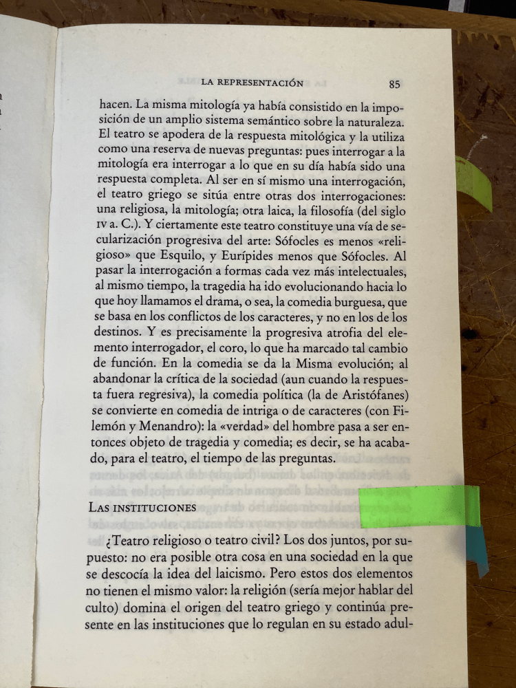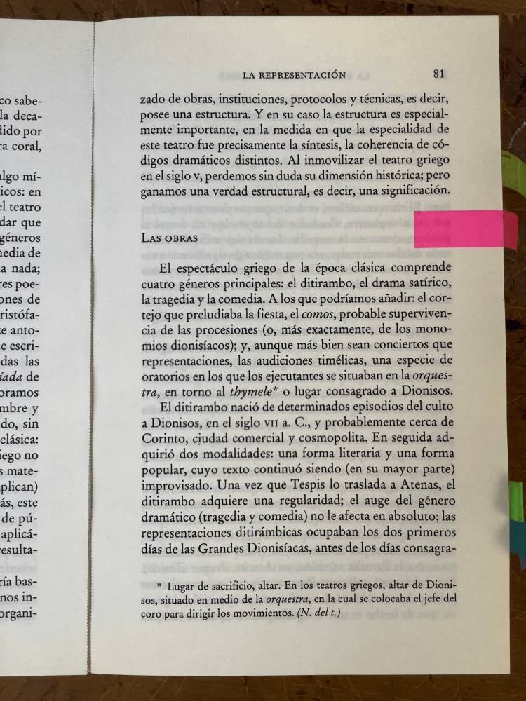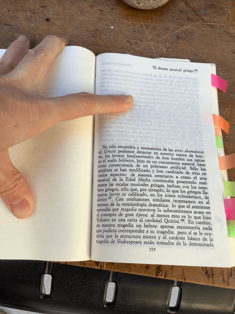 En algunos casos se trata de textos fundamentales de la filosofía y la estética, que es imprescindible releer haciendo especial énfasis en los conceptos sonoros de la escena, como en el caso de Poética de Aristóteles, o de El drama musical griego, ensayo preliminar a El nacimiento de la tragedia de Nietzsche.