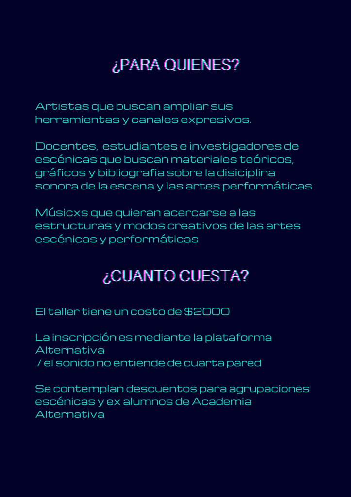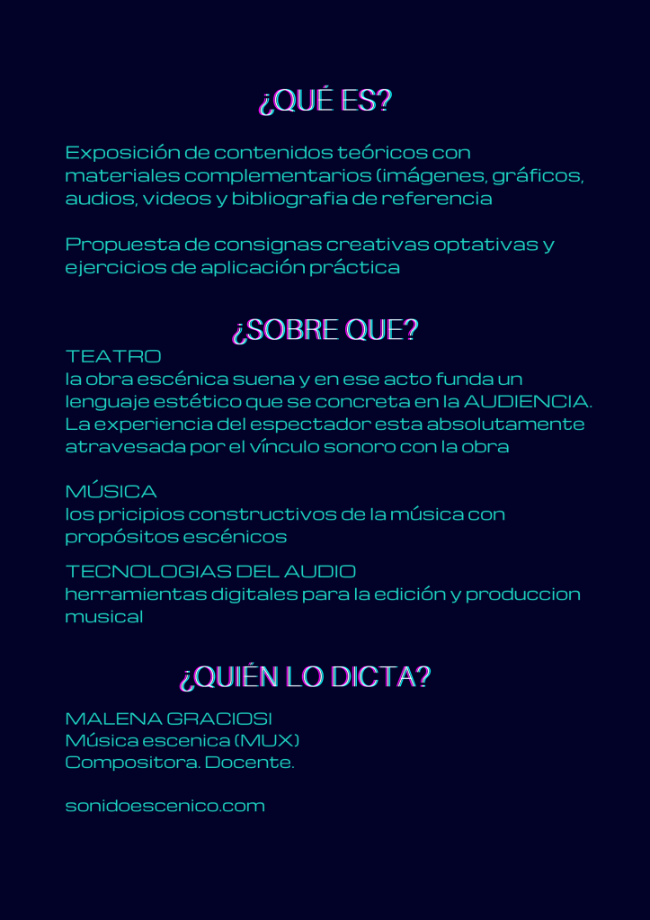 Ya esta abierta la inscripción para el curso teórico/práctico de 8 clases SONIDO ESCÉNICO – Construcción de universos sonoros con fines escénicos y performáticos.